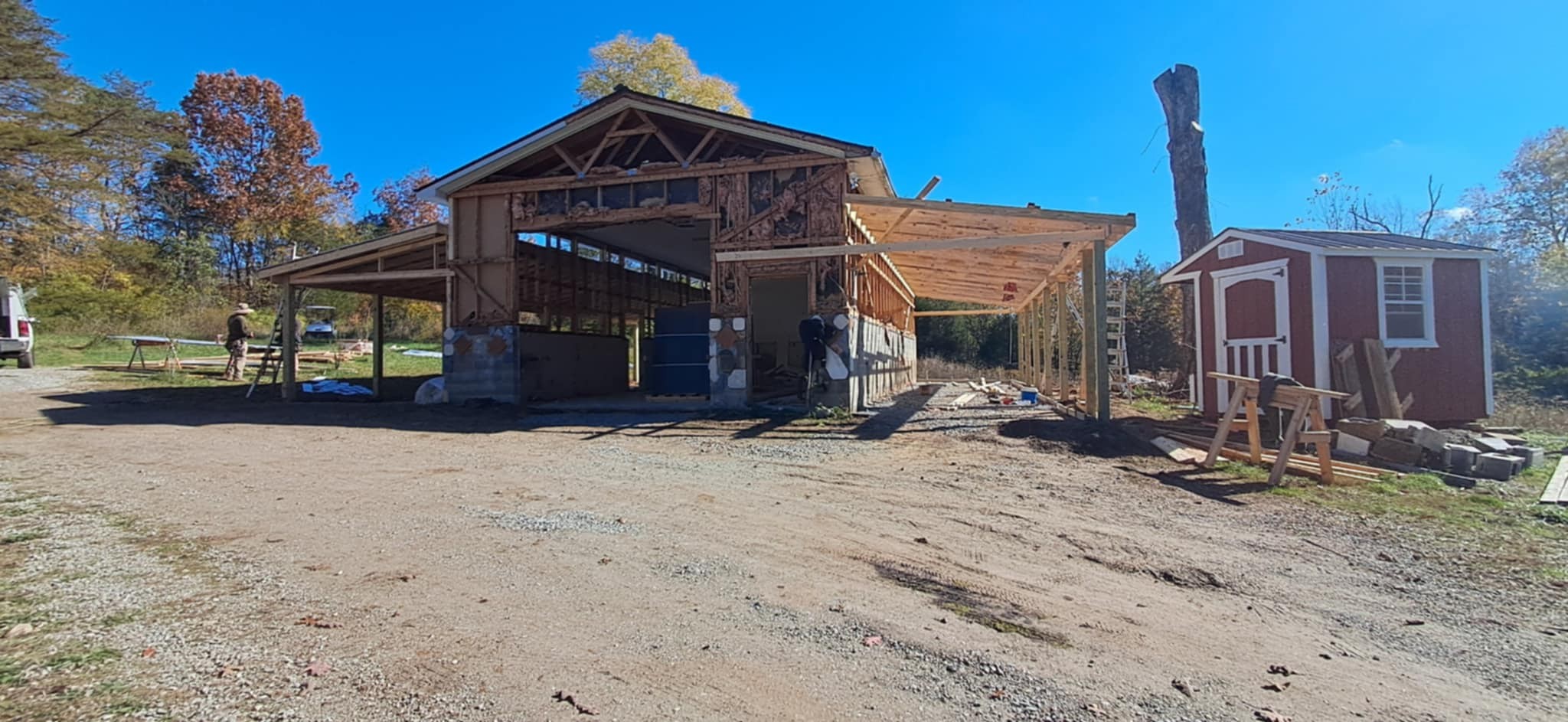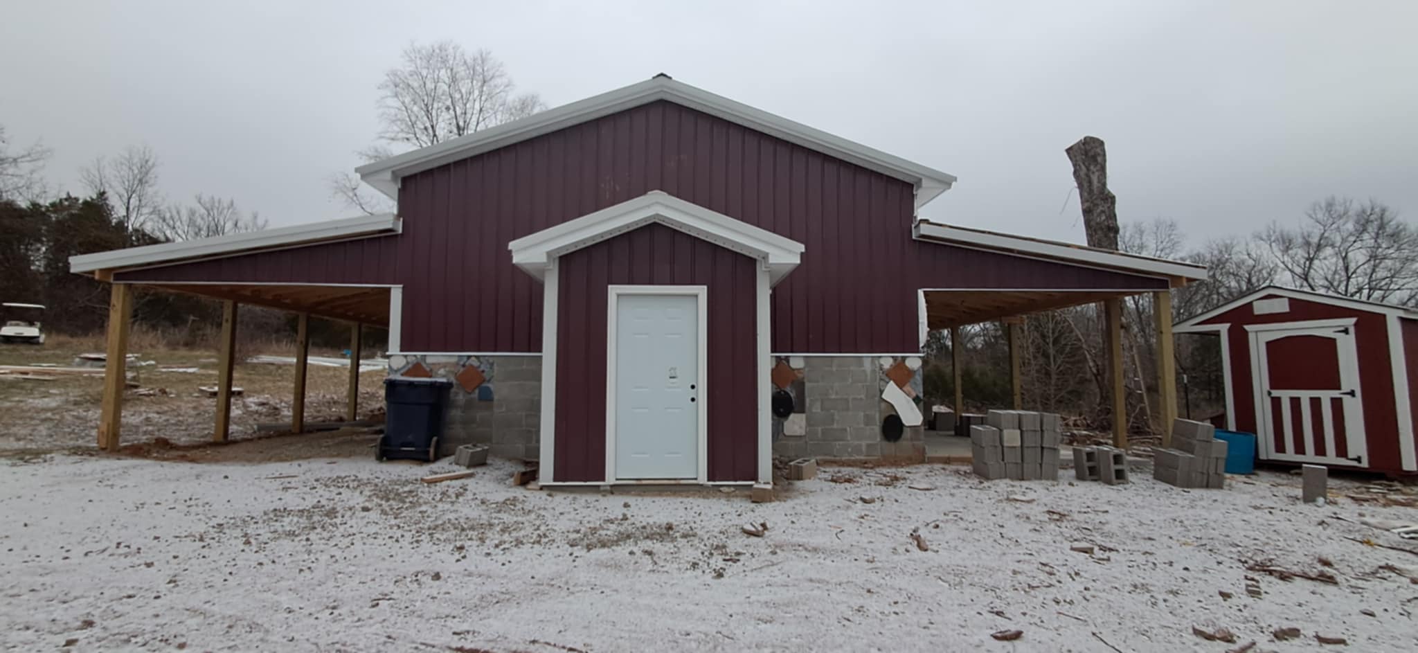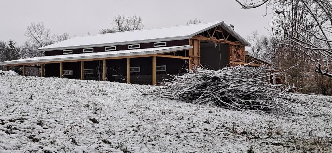- As with any big project, there will be delays. Some wet weather followed by some snow has caused some delays, but we still have progress. The plumbing is all laid out and the electric has been run, just not connected yet. The framing crew has been braving the cold to get the windows framed in on the north side of the building and all exterior metal affixed. It will be a grand sight when it’s finished!!